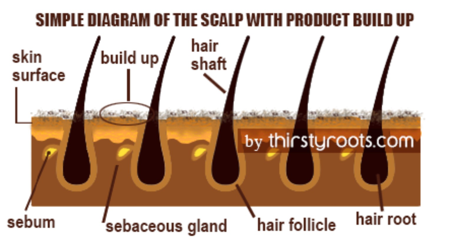 Daily hair products, combined with natural oils and dead skin cells, can accumulate on the scalp and clog pores. This buildup can lead to: